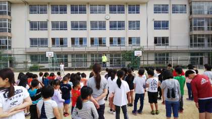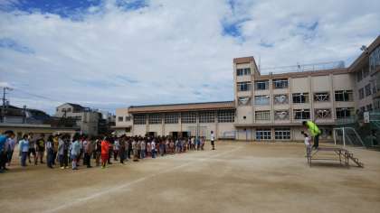 雨の予報でしたが、運動場で児童朝会ができました(#^^#)