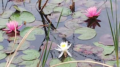ピンク色の蓮の花の中に、1輪だけ白い花が・・・