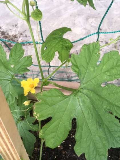 4年生で育てているゴーヤに花が一輪咲いていました。収穫は先のことになりますが、子どもたちの成長とともにすくすくと成長しますように。