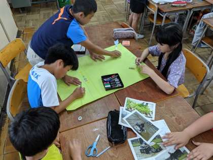 昨日の田植えを終えて、今日はさっそくまとめの新聞づくりを行いました。