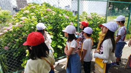 何かによって花の色が変わるんだよと伝えると不思議そうに考えていました。