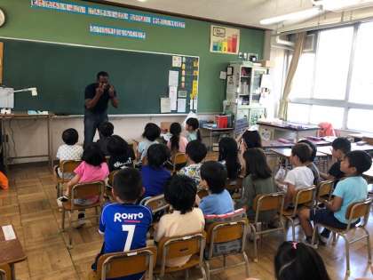 今日はC−NETの先生に来ていただき、外国語活動をしました。