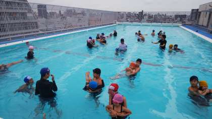 6年生が、優しく声掛けをしながら一緒に入りました。