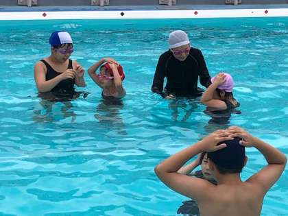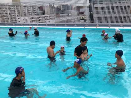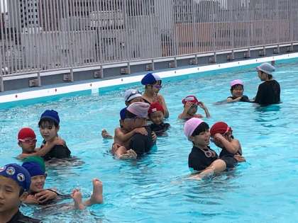 今日は6年生と一緒に、大プールに入りました!!いつもより深いプールなので、1年生も最初は不安な様子でしたが・・・優しい6年生のおかげで、笑顔いっぱいに(^^♪おんぶをしてもらったり、抱っこをしてもらったり、とっても楽しい1時間だったようです。