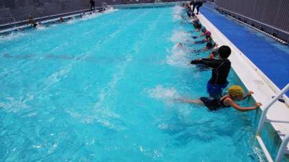 3年生は週に2回、合同体育で4年生と水泳学習をしています。