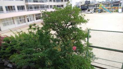 校庭にあるサルスベリの木の花が咲いているのをみつけました(#^^#)