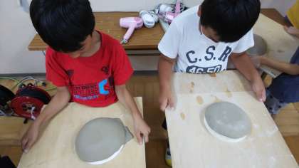 本日の『こども陶芸教室』での仕上げる1つ前の状態です(#^^#)
