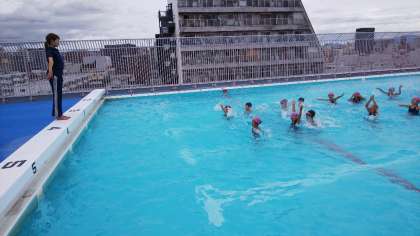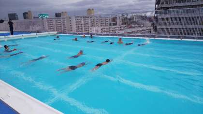 「夏休みに泳ぐ練習したよ。」
