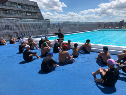 平泳ぎの記録をとって、最後にみんなで楽しい時間を過ごしました。