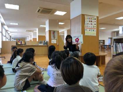 図書の学習の時間に角地さんに「図書館へようこそ」という、本を読んでいただきました。地域の図書館や学校図書館『夢ひろば』ではどのように本が分類されているのか、どのようなマナーがあるのかを教えていただきました。すでに知っていたことも初めて知ったこともあり、図書室の使い方を守っていきたいというやる気に満ちあふれていました。