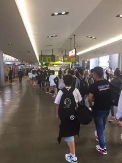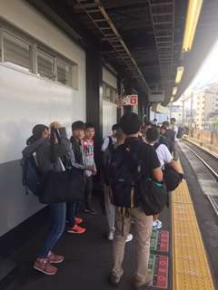 電車に乗って、新大阪駅に向かいます。今日は、祝日ということで、通勤ラッシュに遭遇することもなく、電車の中もゆったりしていました。