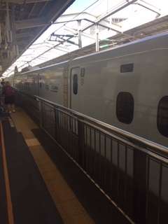 団体専用の新幹線でヒロシマに向かいます。たくさんの学校がホームで新幹線を待っていました。座席について、重い荷物をおろし、ホッと一息つきました。