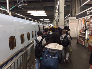 新幹線に乗り込み、大阪に向けて出発しました。修学旅行もあと少しで終わりです。二日間を通して、立派に行動できた6年生の子どもたち。本当によくがんばっています。