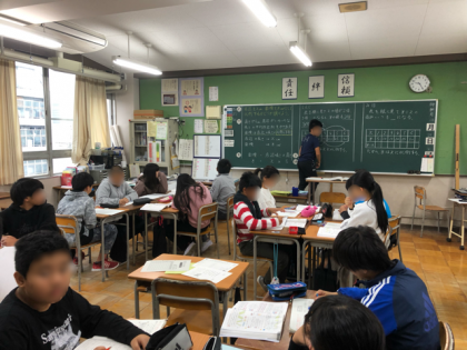 1時間目は算数で、班で学び合いながら、皆で問題解決に取り組みました。