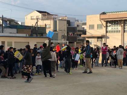木曜日の児童集会では、6年生はリーダーとして、自分の縦割り班の先頭に立ち、他の学年の子を呼んだり、並ばせたりする仕事があります。毎回の集会や先日の全校オリエンテーリングを経て、どの子も「自分がリーダーなんだ。」と自覚が出てきたようです。誰に言われるでもなく、班をまとめ集会が始まるのを待っています。1・2年生の児童も6年生を頼りにしているようで、いろいろ話しかけたり、手をつないで〜と甘えたりです。6年生は大変そうですが、とてもうれしそうです。集会の後には、みんなとても笑顔で教室に帰ってきます。がんばれ6年生!