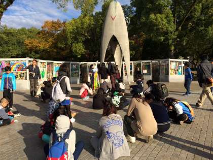みんなで作った折鶴は、原爆の子の像に捧げました。