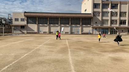 今日は生活科の「伝承遊び(昔あそび)」の学習で凧揚げをしました。子どもたちは、自分の作った凧があがると、とても喜んだ様子でした!(^^)!