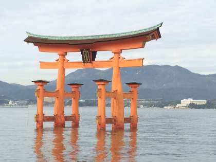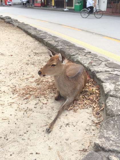 宮島では鹿のお出迎えをうけ、世界遺産でもある厳島神社の大鳥居を見学しました。