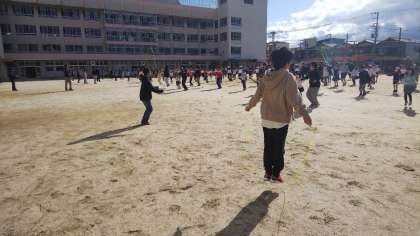運動委員会の児童が前に並んで跳んでいます(#^^#)