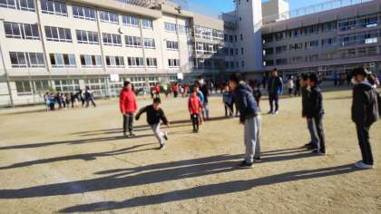『なかよしピョンピョン大会』では、6年生が優しく声をかけながら
