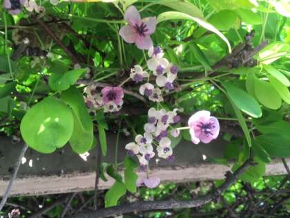 1まい目は小さなむらさき色の花がかわいい「あけび」です。
