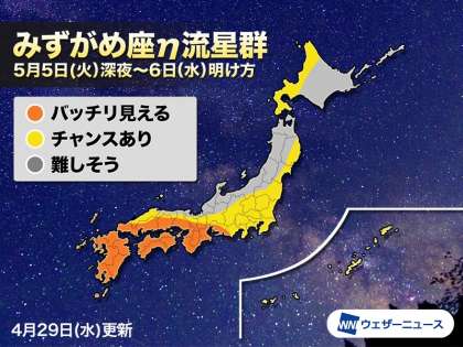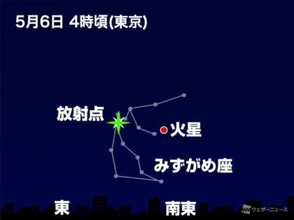 大型(おおがた)連休(れんきゅう)後半(こうはん)の5月6日(水)、みずがめ座(ざ)η流星群(りゅうせいぐん)の活動(かつどう)がピークを迎(むか)えます。