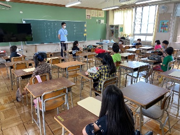 15日は登校日で、3年生の元気な声が学校に響いていました。