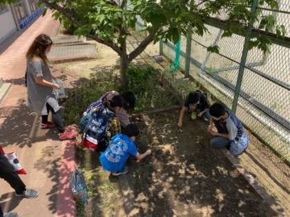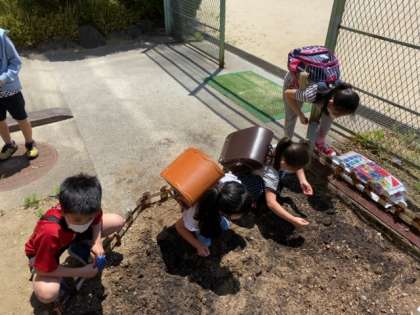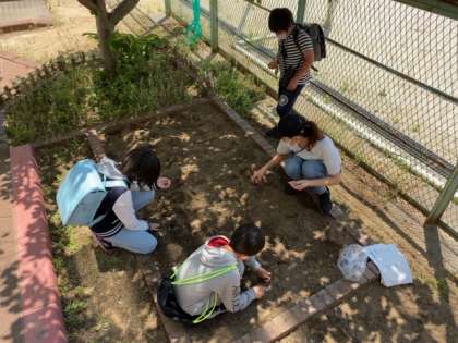 第1回の活動は、4年生、5年生、6年生と学年ごとに『はるかのひまわり』の種を植えました!