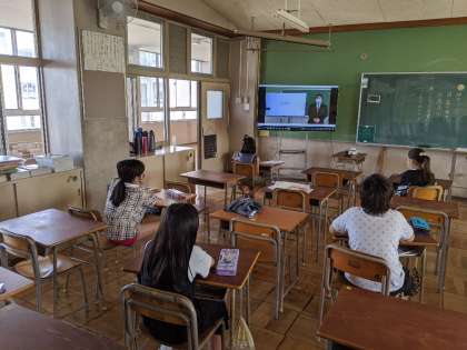 それぞれの教室では時間をずらして動画による始業式を行いました。