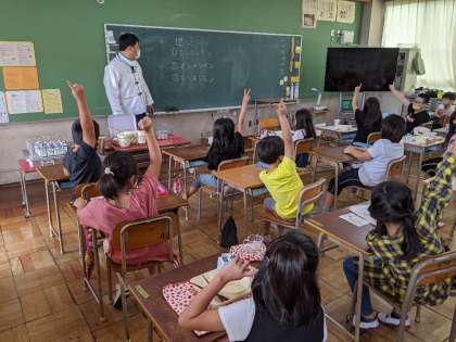 今日の給食の時間はソンセンニㇺとの給食交流でした。