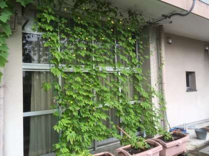 観察する4年生と5年生のクラスからはゴーヤがほしい児童の歓声が上がっています。
