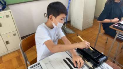 筆の持ち方や、穂先がどんな向きになるのかなどを意識しながら、様々な線をかきました。次の学習も楽しみです。