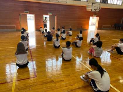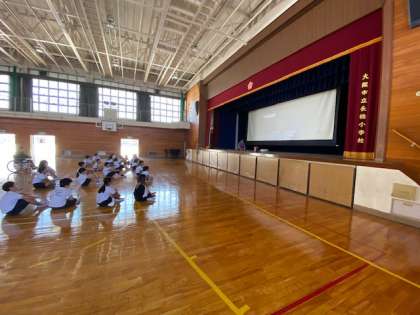 体育科で、マット運動の学習をしています。前転、後転、開脚前転、開脚後転…など、様々な技に取り組んでいます。タブレットを用いてお手本の動画を見たり、友だちの技の様子を撮影したりしながら、より綺麗な技にするにはどうすればいいのかを考えています。