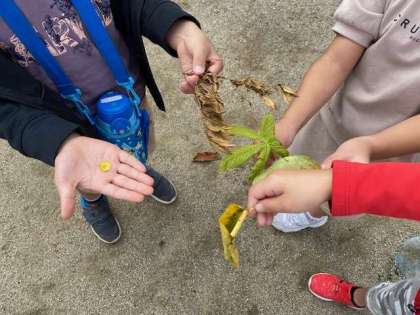 今月16日(金)には社会見学で長居公園へ行きます。大きな公園でもっとたくさんの秋探しをする予定です。詳しくは後日しおりを配りますので、そちらでご確認ください。