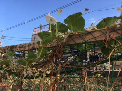 朝晩のひんやりした風と昼間の暖かい日差しで、ひょうたんがもう一度花を咲かせ、実をつけようとしています。