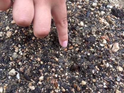また、秋植えの種を学習園にまきました。レタスを植えました。小さい種を見て、「これからレタスできるの?」と、興味津々でした!(種は別の学習園のたねです。)
