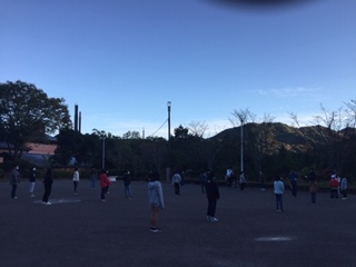 朝のつどいでも、元気よく挨拶し、のびやかにラジオ体操する姿が見られました。