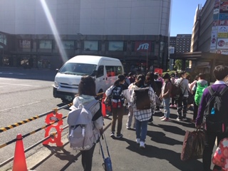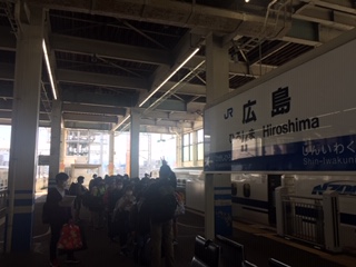 ヒロシマに到着しました。お天気もよく、午後の活動も問題なくできます。ぽかぽかした陽気がとても気持ちよく、絶好の修学旅行日和です。