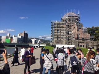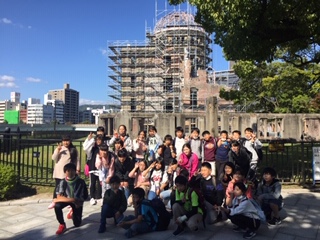 爆心地と原爆ドームの見学です。原爆の凄まじい威力を感じているようでした。二度と起こらないことを願い、この後の活動も熱心に取り組む子どもたちです。