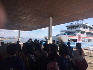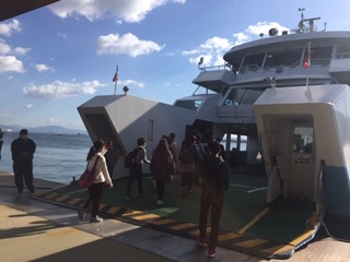 宮島へは、松大汽船に乗って移動します。ターミナルも改装されて、美しくなっていました。