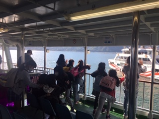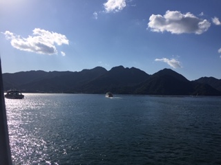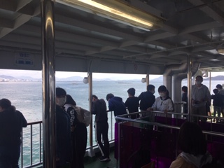 船内では海風を浴びながら、景色を堪能していました。宮島まではあっという間です。
