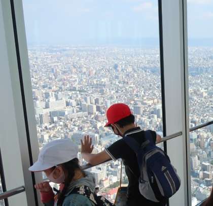 電車の中から見える建物や駅の様子、ハルカスから見える大阪市全体の様子など、