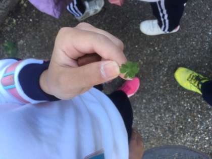 11月5日の全校オリエンテーリング、四葉のクローバーを見つけてくれました。