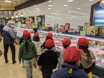 今日は鶴見橋商店街内のスーパー越前屋に社会見学に行きました。