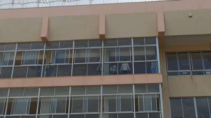 廊下から応援している長橋っ子の姿がありました。