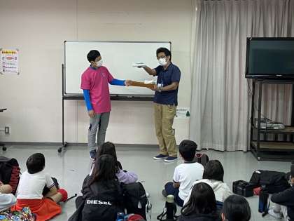 入所式では、施設利用の約束、協力して活動すること、布団の使い方などについて説明を受けました。