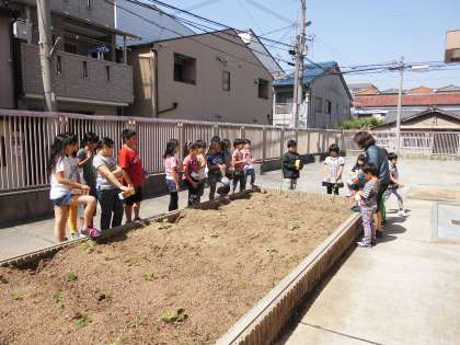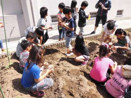 子どもたちは、「大きく育ちますように…。」と愛情をたっぷり込めて植えていました。