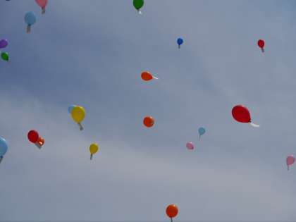 昨日の運動会で、100周年特別企画として全校児童でバルーンリリースを行いました。かけ声に合わせて、一斉に空へはなたれた風船。南の空へすいこまれるように、いきおいよく、天高く舞いあがりました。