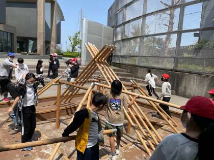 竪穴住居づくりの体験も行い、