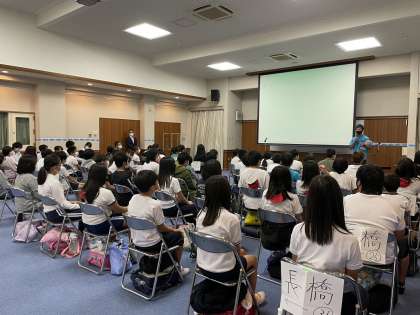 はじめに生徒会による学校紹介や各部活動の紹介がありました。児童たちはしっかりとあいさつをし、緊張感をもって進めることができました。